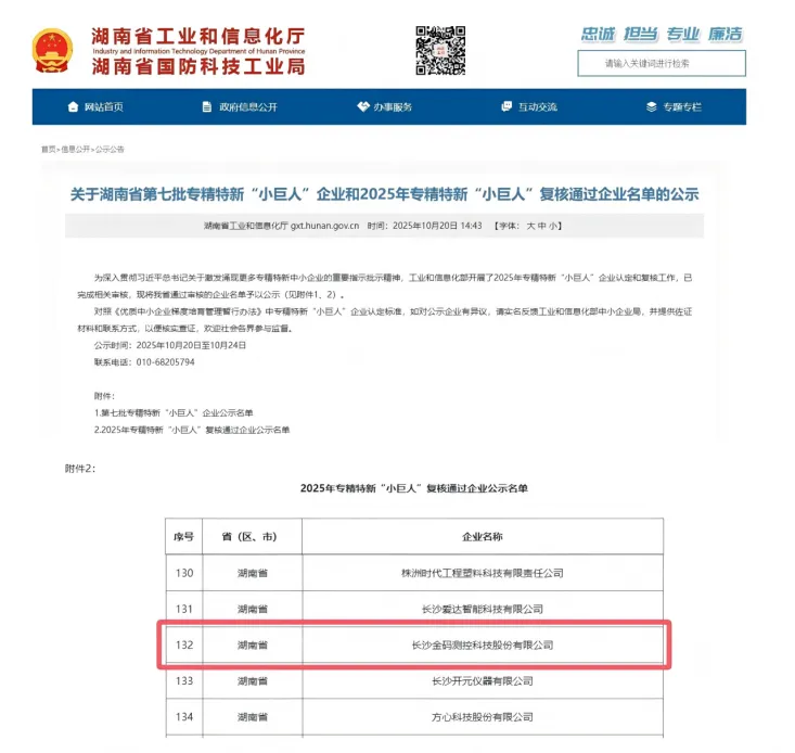 I oktober 2025 har ministeriet för industri och informationsteknologi slutfört granskningen av 2025 års "Little Giant"-företag under klassificeringen "Specialiserade, raffinerade, differentiella och innovativa" och officiellt publicerat listan. Kingmach Measurement & Monitoring Technology Co., Ltd har framgångsrikt klarat den strikta granskningen och återvunnit denna ära på nationell nivå, tack vare dess ihållande innovationsförmåga, professionella tekniska styrka och stabila marknadsprestanda.